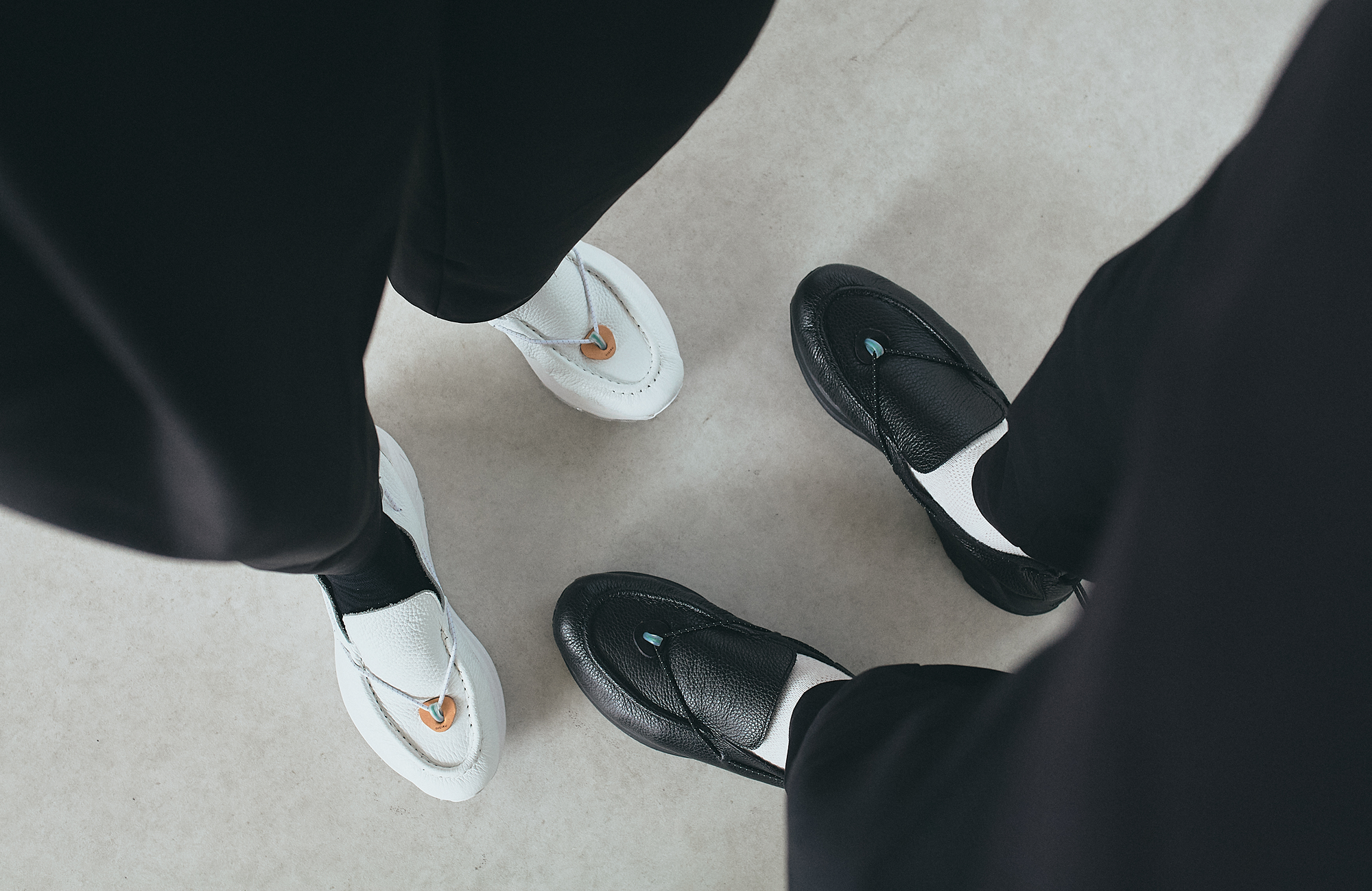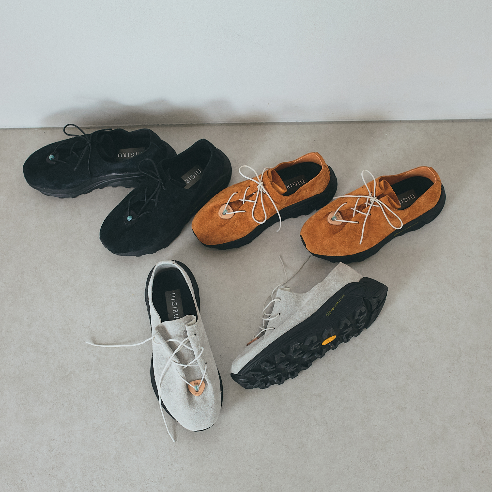 NIGIRUには独自の「インナー鼻緒」構造が搭載さてれいますが、一般的な雪駄や草履のような強い圧迫感はありません。開発段階では長時間の試し履きテストを繰り返し行い、指股にかかる負担を最小限に抑えられるよう設計されています。ただし感覚には個人差があるため、最初は短時間から履きならしていただくか、シューレースを調整することでフィット感を整えていただくと安心です。